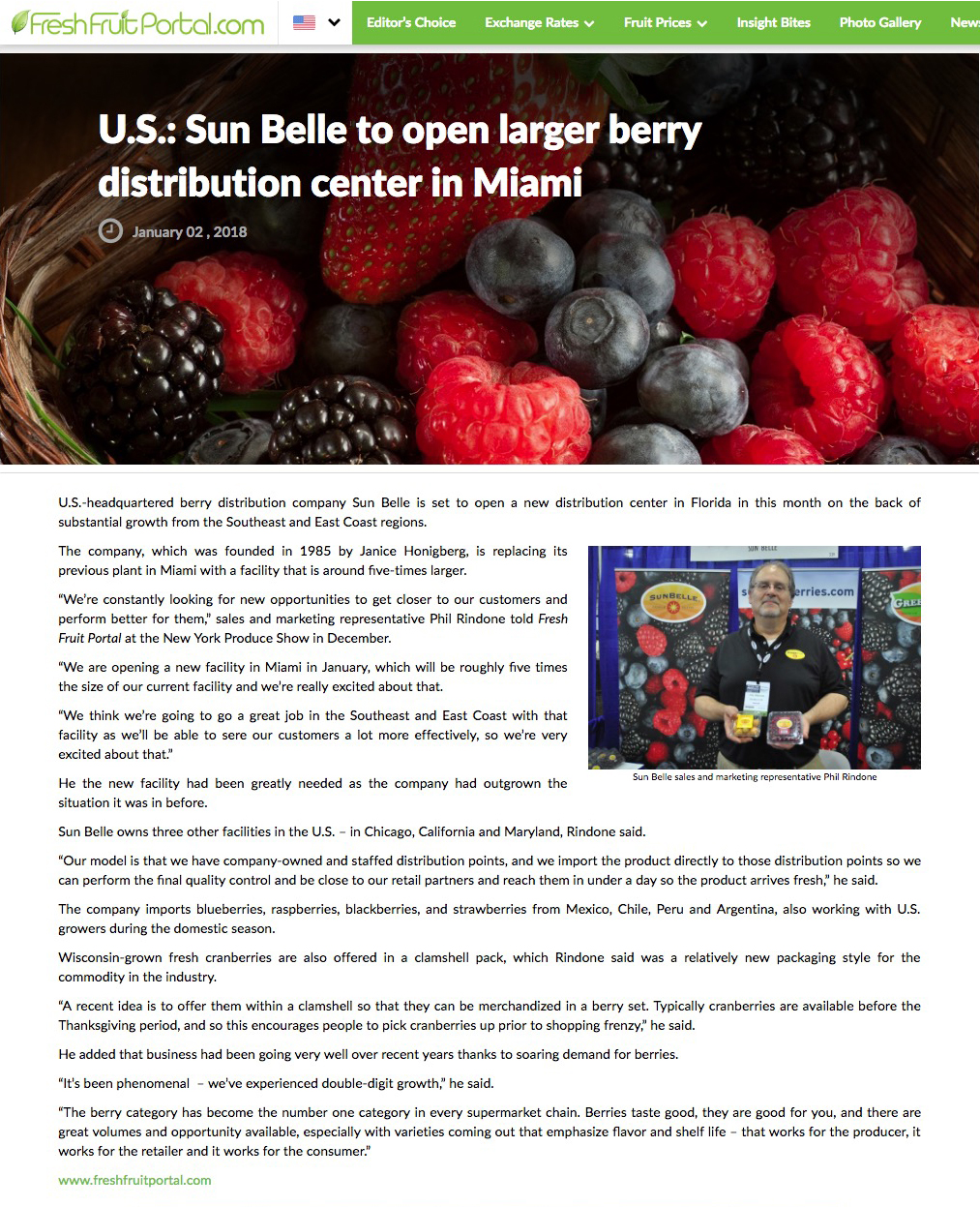 01/04/2018 - Sun Belle to open larger berry distribution center in Miami